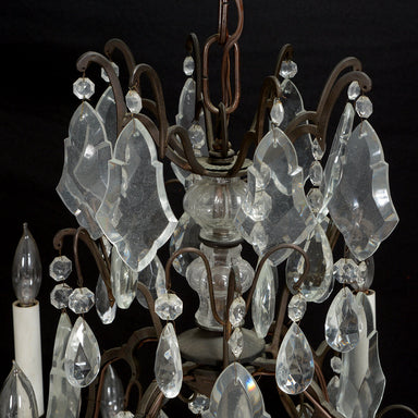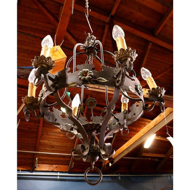 AL1-001: Antique Early 20th Century French Art Nouveau Tole Chandelier with Alabaster Shade and Porcelain Flowers