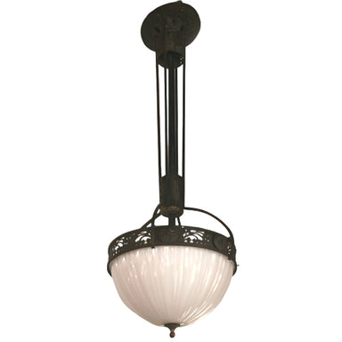 Antique Early 20th Century French Art Nouveau Tole Chandelier with Alabaster Shade and Porcelain Flowers Dimensions: Height- 28-1/2"; Diameter - 17...