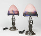 AL2-014: Pair of Early 20th Century French Le Verre Français Art Glass & Wrought Iron Boudoir Lamps
