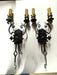 20th Century Lighting Pair of Spanish Colonial Sconces Model # 1158 - Las Gardenias in Distressed Painted Iron Finish. Showroom sample sconces reconditioned to remove any signs of age / use. Note: We have another pair of this same sconce in the same finish available - See AL3-017.