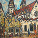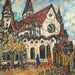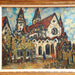 AW342: Sacha Moldovan Modernist Village Scene Oil on Canvas Painting Circa 1958