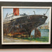 E McClelland Modernist Oil on Masonite Board Painting Freighter "Maumalaa" in Harbor. Signed lower left. Presented in original period artist's frame.