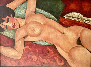 After Modigliani Copy of "Reclining Nude" Oil On Canvas Painting. Very faint signature lower left. Likely painted by a follower of Modigliani aft...