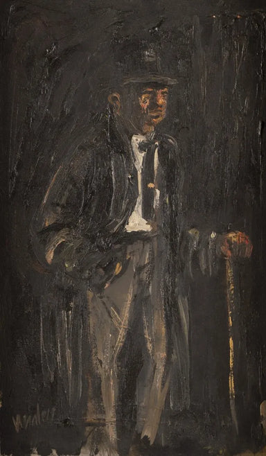 Early 20th American Modernist / Ashcan School - Oil on Board - Fancy Man with Cane. Illegibly signed. Period modern frame. Image size, 6" L x 10" H.