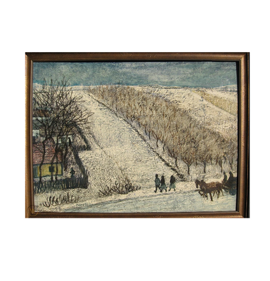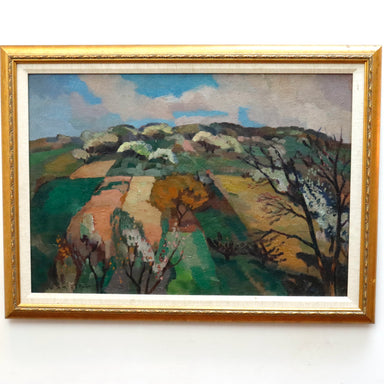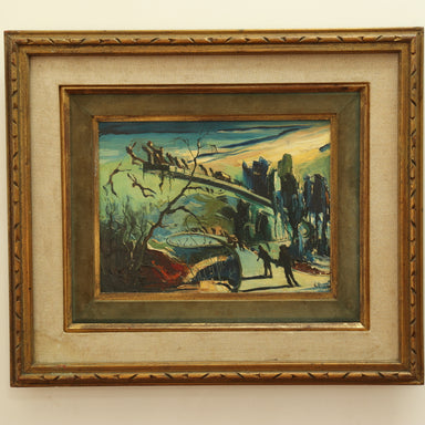 TITLE: Modernist Landscape FRAME: COMMENTS: Outstanding modernist landscape with figures by listed Hungarian modernist artist Bela Czene (1911-1999...