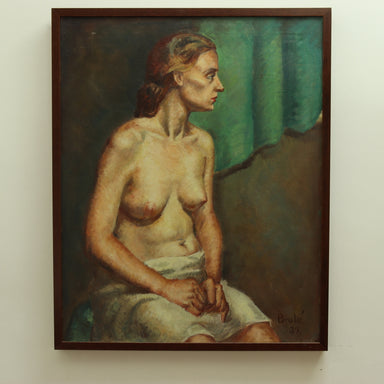 Elmo Brule WPA Artist "Seated Nude" Oil on Canvas Circa 1939 Dimensions: Sight: 30" x 24"; Frame 34 3/4" x 33 3/4"
