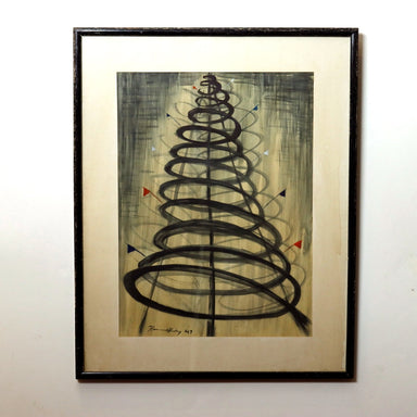 Hans Heinrich Ernst Hartung (1904 - 1989) Mid Century Modernist Spiral Whimsy Gouache on Paper. Signed and dated '47 lower left. Dimensions: Sigh...