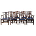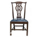 An assembled set of 12 early 19th Century English Chippendale style dining chairs, each having a serpentine crest rail over a pierced splat with blue leather slip seats, and rising on block legs.