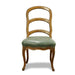Set of Five Late 19th Century French Provincial Louis XV Walnut Side Chairs, each having a slatted back, above a green upholstered faux leather seat accented with brass nail head trim, and rising on cabriole legs