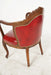 AF2-158: Antique Early 20th Century Rococo Style Carved Walnut Arm Chair W/ Red Leather Upholstery