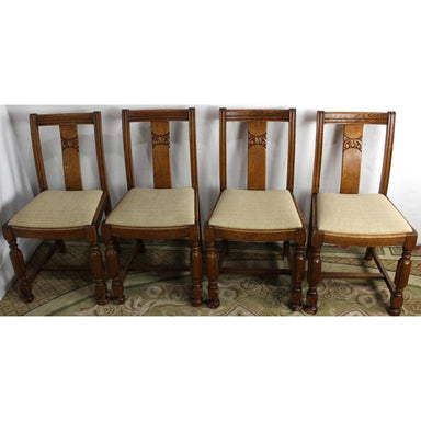 Set of 4 early 20th Century dining chairs, executed in oak, 34"h, (See AF1-145 for the companion dining table)