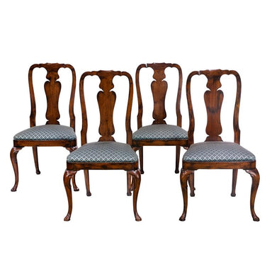 Set of 4 Late 20th Century Queen Anne style mahogany side chairs, each having a shield form splat and rising on cabriole legs, 39"h