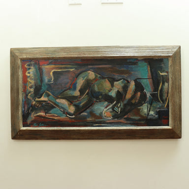 Joe Stein "Sleeping Nude" Abstract Oil on Canvas Mid Century Original Frame Dimensions: Sight 14" x 30"; Frame: 18 7/8" x 34 7/8"