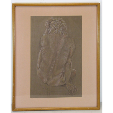 Phylis Raskind Crayon on Paper of Male Nude in the style of Paul Cadmus, by Phyllis Raskind (American, 1936-2018). Signed "P Raskind J190" It is ...