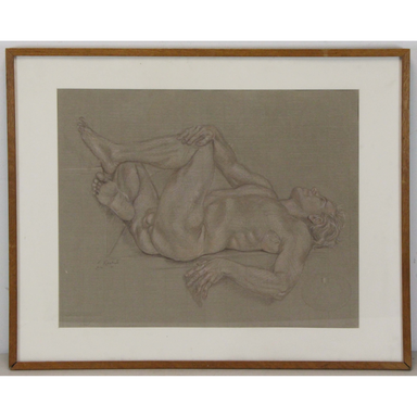 Paul Cadmus (American, 1904 - 1999). Crayon On Toned Paper - Male Nude (Most likely Paul Anderson) Signed upper left. Very Good Condition Dimensio...