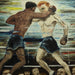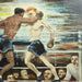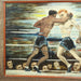 WPA Modernist Oil on Canvas Painting of Boxers in Ring in Period Frame Circa 1942. Signed "P deJong '42"