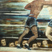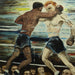 AW649: WPA Modernist Oil on Canvas Painting of Boxers in Ring Signed "P deJong 42"
