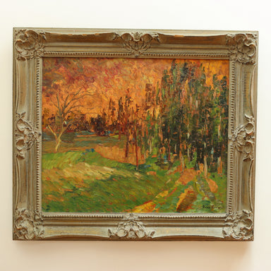 AW616: Mary Andrade St. Marks Church Philadelphia Oil on Board Painting Mid 20th Century