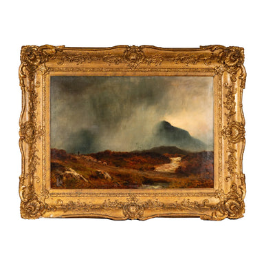Late 19th Century Scottish Landscape Oil on Canvas Painting of a shepherd and his flock. Signed "Sinclair "lower right. Relined and restored. Dimen...