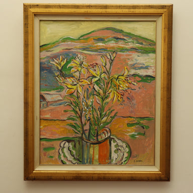 Georges Spiro (Born 1909 Warsaw, Poland - Died 1994 Nice, France) Surrealist Wildflower Still Life Landscape Oil on Canvas. Signed lower left. Dim...