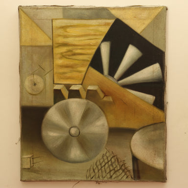 Ivan Yahnadzhier Constructionist Oil on Masonite Board Painting Dimensions: Sight 14" x 17 3/4"; Frame 14 1/2" x 18 1/4" Comments; Ivan Yahnadzhiev...