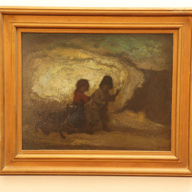 Eugene Higgins Children and Dog Oil on Board Dimensions: Sight 11 1/4" x 14 1/8"; Frame 15 3/4" x 18 3/4" COMMENTS: Eugene Higgins (born 1874 in Ka...