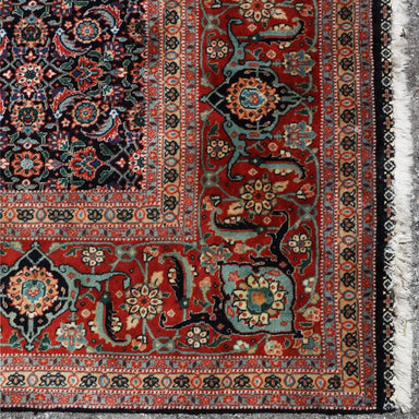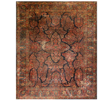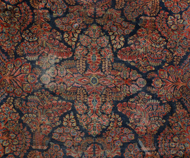Early 20th Century Persian Sarouk room Size Rug - Elaborate all over palmette and vine pattern in and navy blue field. Dimensions: L 11' 4"x W 9'