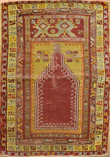 Antique Early 20th Century Turkish Oushak Throw Rug Dimensions: 4' 8" x 3' 5" (142 x 104cm)