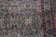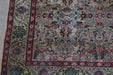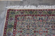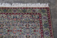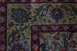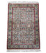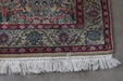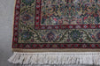 Persian throw rug with wool pile; green field with a double floral red line border; 4'2" x 6'6"