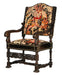 AF2-035: ANTIQUE LATE 19TH CENTURY SPANISH COLONIAL REVIVAL CARVED ARMCHAIR WITH NEEDLEPOINT UPHOLSTERY