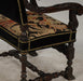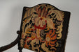 Late 19th C Spanish Colonial Revival Carved Armchair covered with needlepoint and brown velvet.