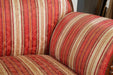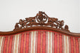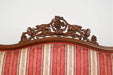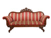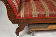 Mid 19th C American Victorian Rococo Revival Carved Walnut Upholstered Sofa with pierced grapevine crest; covered in later striped upholstery