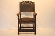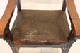AF2-318: Antique Late 19th Century Highly Carved Walnut Spanish Colonial Arm Chair with Tooled Leather Upholstery
