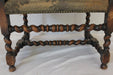 AF2-374: Antique Pair of Early 19th Century Louis XII Style Carved Walnut Arm Chairs w/ Tapestry Remnant Upholstery