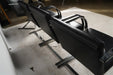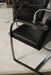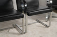 Set of 10 Modernist flat bar chairs in the style of Mies Van her Rohe's "Brno" chair. Chrome plated steel, black vinyl upholstery. Unsigned.