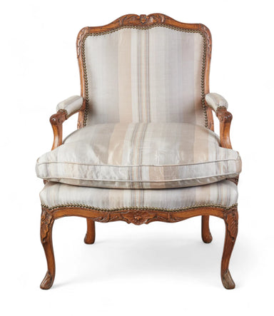 AF2-037: Pair of Late 20th Century French Provincial Fruitwood Fauteuils w/ Leather Upholstery