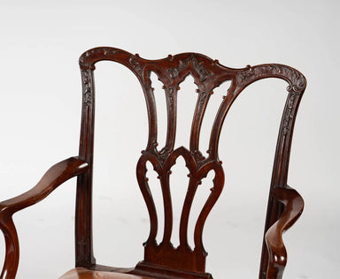 Pair of Late 20th Century French Provincial Fruitwood Fauteuils w/ Leather Upholstery w/ 8 way hand tied coil spring foundation. Another pair of th...