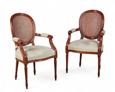 Modern Louis XVI Style Cane Back Fauteuils Set of Four. Late 20th Century Dimensions: 39 1/2" x 21" x 23"