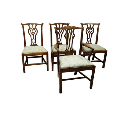 Set of 4 Chippendale style mahogany, c 1800, dining chairs, each having a pierced splat and rising on square legs, consisting of (3) sidechairs 36"...