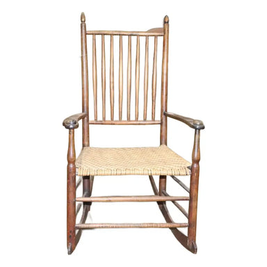 A period American Shaker rocking chair, retaining an early rush seat and period rails, 36"h
