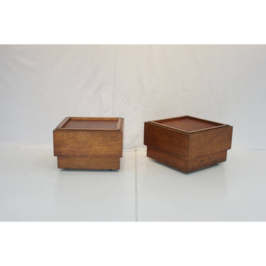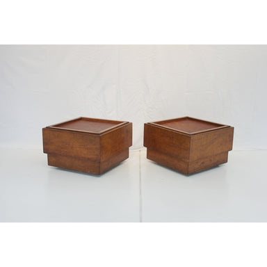 Antique Pair of c.1920's French Art Deco Walnut Seats on Casters with leather cushions Dimensions: 19 1/2" x 19 1/2" x 13" Height; Height w/ cushio...