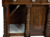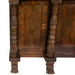 200 + Year Old Antique Circa 1800 American Federal Mahogany Sideboard in very good original condition with original glass pulls and original finish. The recessed back splash flanked by columnar form end supports, over the rectangular top, twin side by side drawers, over three cupboard doors within elaborately carved classical Corinthian columnar supports, rising on paw feet.