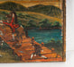 Comments: Ex-votos are offerings given to a saint or divinity in fulfillment of a vow or in gratitude for a favor granted. This painting is a scene with several figures in a landscape. A saint like figure is perched on a cloud, holding a staff, while below him a group of peasants are engaged in a conflict trying to cross over on a wooden bridge. A nonparticipant holds a sign proclaiming "EX VOTO" on the shore. The landscape includes hills, trees and a stream of water with a cloudy sky above. The painting is rendered in a folk art style with somewhat naive and stylized figures and a limited color palette painted on an aged wood panel indicating this painting dates to the 18th Century.
