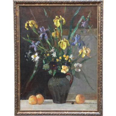 Fauvist Still Life Mid Century Oil on Canvas Laid to Board Painting Dimensions: Sight 14" x 9 1/2"; Frame 22 1/4" x 18"