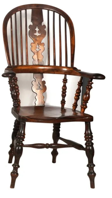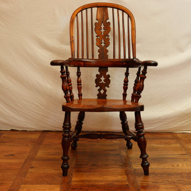 Antique Near Pair of Early 19th Century American Sack Back Windsor Chairs, each having a pierced splat centering the turned spindles Dimensions: 3...