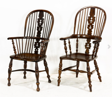 AF2-006: Antique Near Pair of Early 19th Century American Sack Back Windsor Chairs