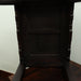 Pair of early 20th Century Chinese carved hardwood side tables with geometric-carved apron; 16 1/4 inches wide; 12 inches deep; 20 1/2 inches high