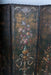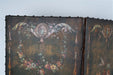 AF10-005: ANTIQUE EARLY 20TH CENTURY FRENCH THREE PANEL POLYCHROME DECORATED LEATHER SCREEN