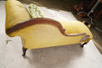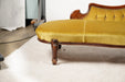 Antique Mid 19th Century Victorian Carved Mahogany Recamier covered with a gold velvet upholstery fabric in good condition.
