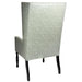 A pair of Chesterfield style wing back armchairs, each having a tufted back accented with nail head trim, and rising on ebonized and turned legs, 53"h x 27"w x 26"d